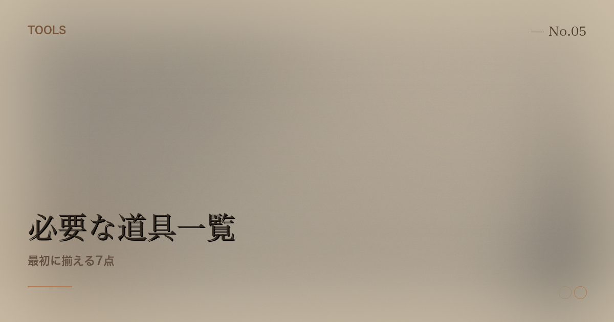 | カテゴリ | 主な道具 | 予算目安 | 優先度 |